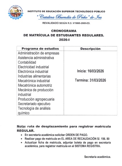 Leer Más…El Comité de Evaluación para el Proceso de Encargatura de Puestos de Gestión Pedagógica 2026, en el IESTP “Catalina Buendía...